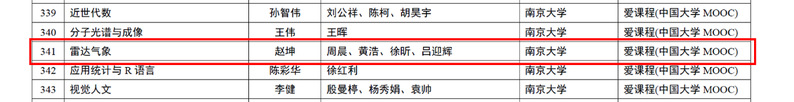 近日,教育部发布《关于第三批国家级一流本科课程认定结果的公示》,我院赵坤、周晨、黄浩、徐昕、吕迎辉老师主持的《雷达气象》课程被认定为第三批国家级线上一流本科课程。加上2020 年获得首批认定的张熠老师负责的《动力气象学》(线上一流课程)和房佳蓓老师负责的《地球流体力学》(线上线下混合式一流课程),以及2023年公布的第二批国家级一流本科课程的方娟老师负责的《天气学原理与实验》(线下一流课程),学院共有四门课程被认定为国家级一流本科课程。