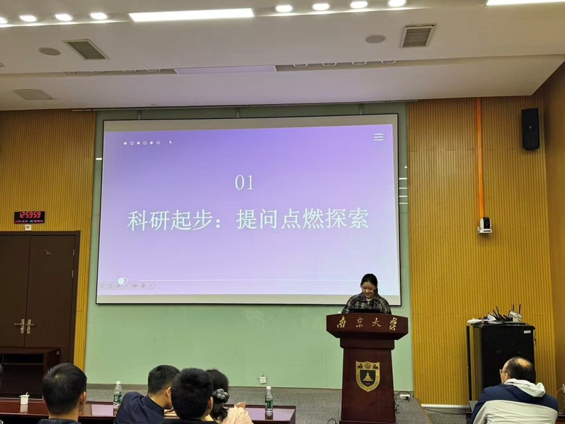 在学生代表分享环节,23级拔尖计划王若曦同学结合教育部线上书院“科学与猜想”入选经历,鼓励同学们敢于主动迈出科研第一步,善于借助导师资源与工具方法,提出“anything is better than nothing”的实践感悟;22级拔尖计划李凯同学分享了多次参与科研活动的收获,他建议大家尽早尝试、探索兴趣方向,同时肯定“专注学业亦是扎实基础”的成长选择;22级拔尖计划付天祥同学提醒同学们“明确自身动力,拒绝盲目跟风”,理性平衡学业与科研,请大家注重内在成长的重要性。