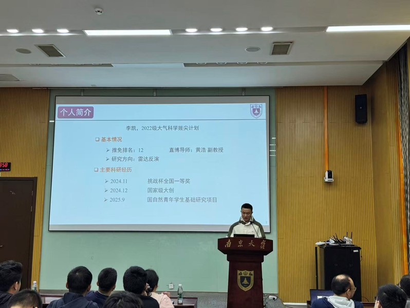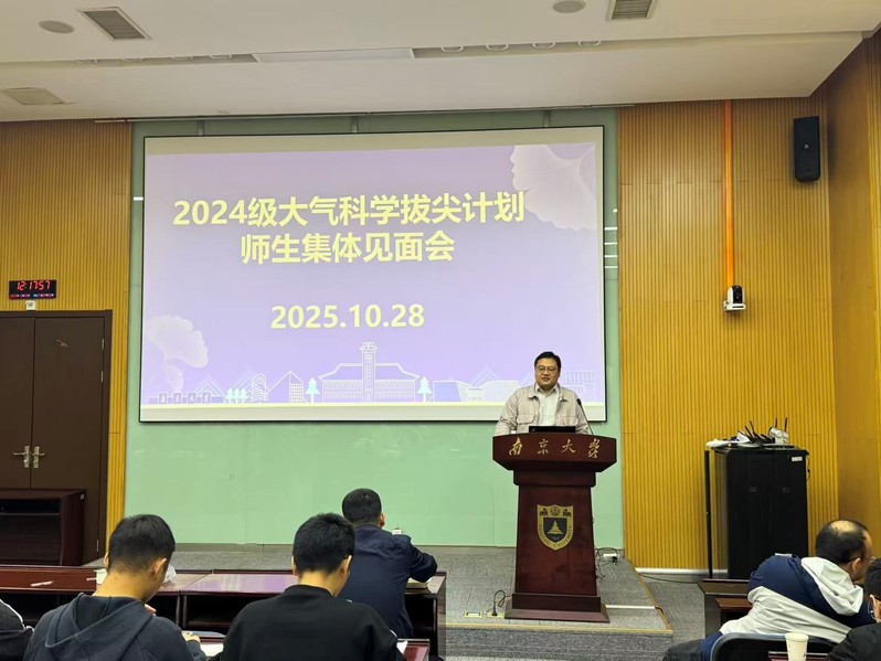 10月28日中午yl6809永利官网2024级大气科学拔尖计划师生集体见面会在院楼D103成功开展。党委书记林仕尧、院长赵坤、党委副书记王欢、副院长黄丹青及24级拔尖科研导师代表孙旭光、聂玮、胡海波、黄浩、蒋益荃、汤帅奇、李元龙、傅豪、刘奇等与拔尖计划学生开展积极交流,会议由拔尖班主任刘岩主持。针对刚就读仙林校区的大二拔尖班,刘岩老师详细介绍了学院大气科学拔尖计划的动态进出机制、本研衔接培养、学生激励机制。